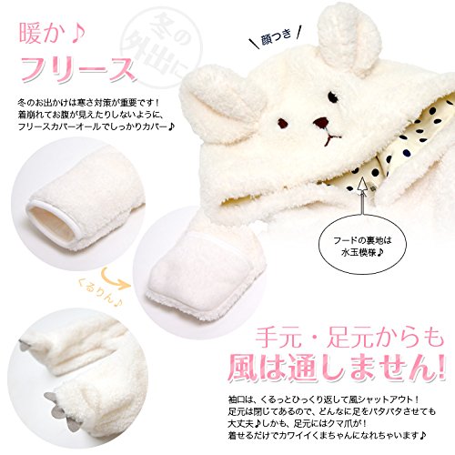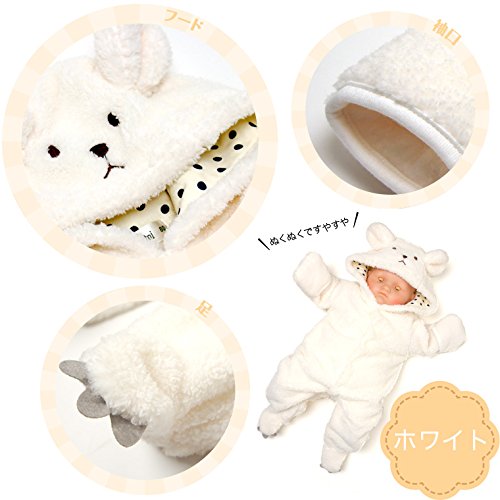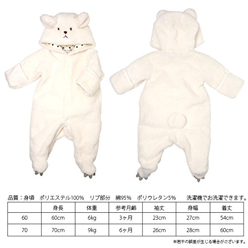 【クマ白&紺】足袋付シャギーフリースカバーオール (70cm, W-白)