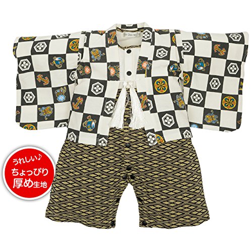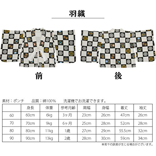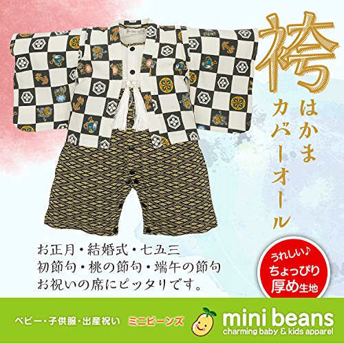 【市松柄紋付オール】羽おり付き紋付カバーオール (90cm)