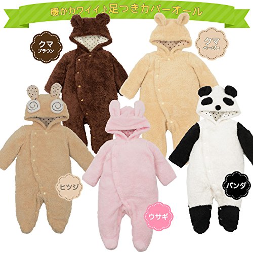 【NEW5種足袋付きカバーオール】足袋付きカバーオール モコモコ (70cm, ベージュくま)