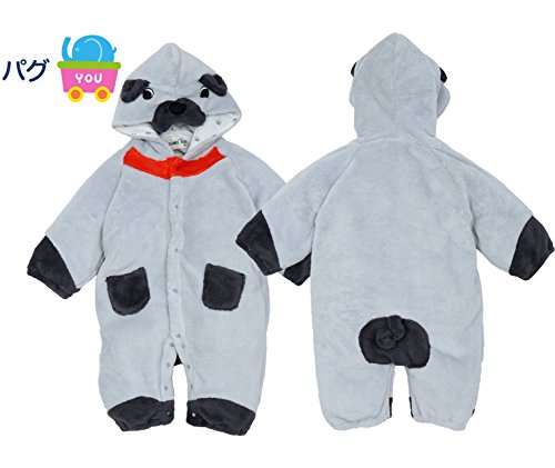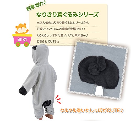 ワンちゃんの着ぐるみです。 柴犬とパグがあります。 しっぽも付いていてかわいいよ。フード裏には足跡プリントがあります。 SNSにもアップしてね。 お出かけ用、ハロウィン用、年賀状用、記念撮影用の着ぐるみです。 軽くて、暖かいシャギーフリースの カバーオールです。