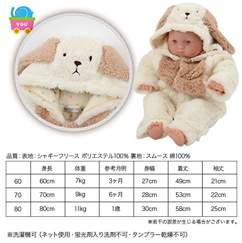 【着ぐるみ】【犬カバーオール】干支 戌 犬ロンパース 着ぐるみカバーオール ベビーカバーオール (60cm)