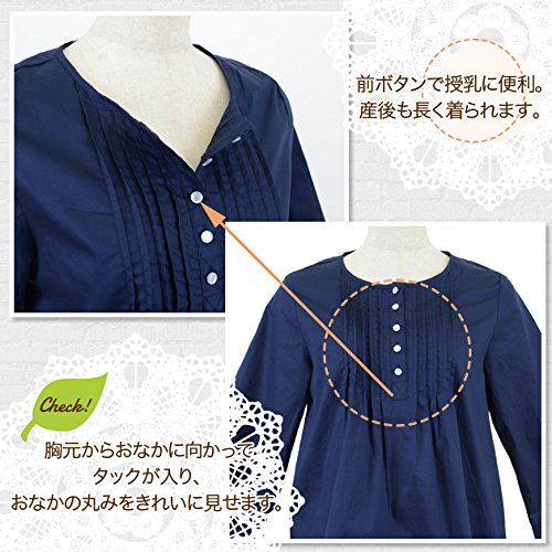 【マタニティ】【トップス】前タックブラウス (紺)