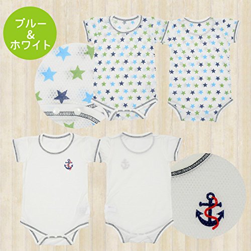 【肌着2P半袖コンビ】半袖コンビ2枚組み (80cm, ブルー星)