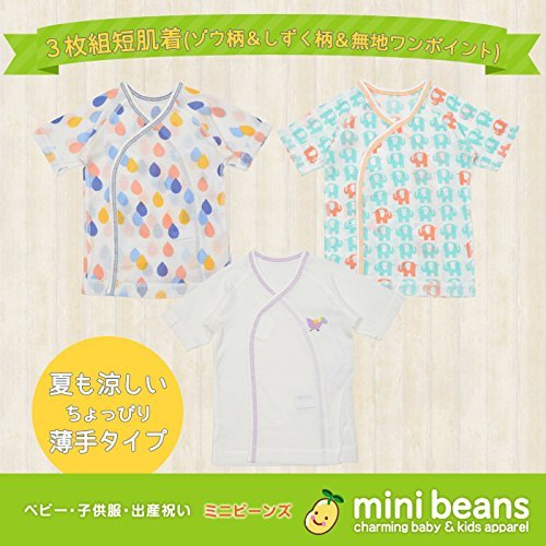 3枚組みの短肌着のセットです。 ゾウ&しずく&ワンポイントのセットです。 保温だけでなく、首回りや脇の汗を吸ってくれるので、体の清潔さを守る役目もあります。 汗をかきやすい季節はもちろん、年間を通しての必需品♪ 吸湿性・通気性があり、肌ざわりもやわらかな綿素材がおすすめです。 汗をかく季節は洗い替えに何枚も欲しいですよね♪