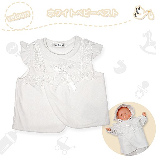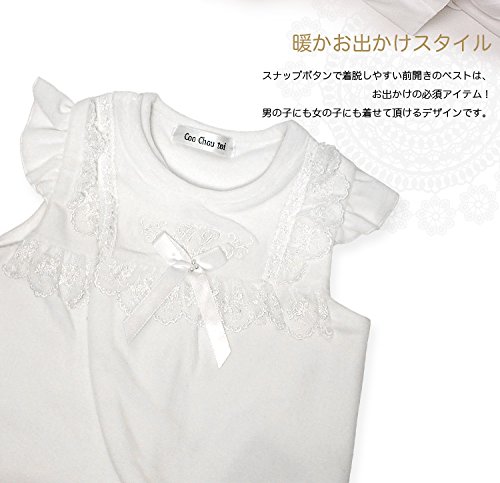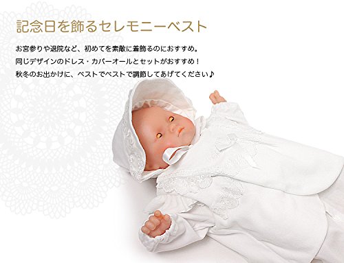 シンプルで可愛いデザインのベスト、退院や、お披露目の時や、お食い初め(百日祝い)などの際にも活躍してくれます。 寒い日の羽織りものでセレモニー的です。 ホワイトドレスの上に羽織れるデザインです。
