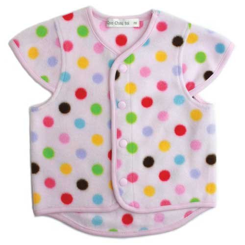 【総柄ベスト】ピンク地水玉フリースベスト (80cm)