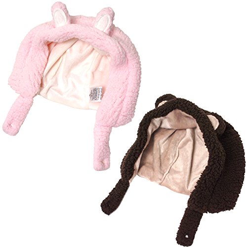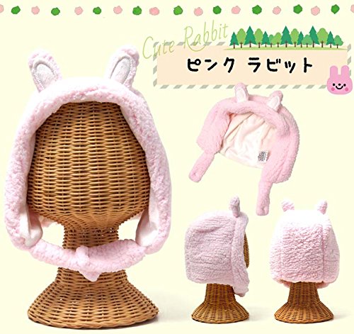 【モコモコ動物帽子】ボアフリース帽子 (52cm-54cm, ピンク(うさぎ))