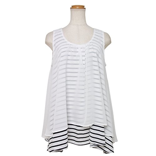 【マタニティ】【授乳口付き】【トップス】シフォンレイヤー風チュニック (白黒ボーダー)