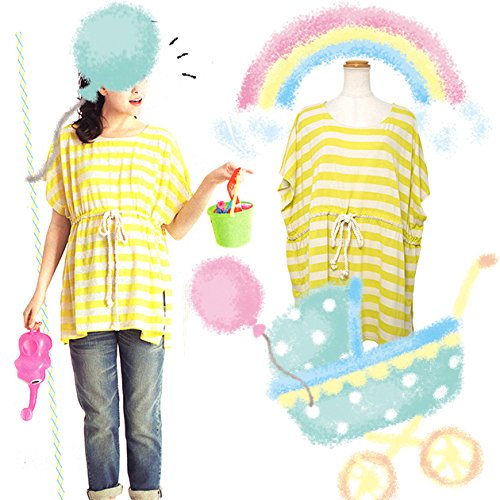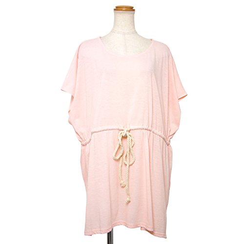 【M~L フリーサイズ】着丈62cm 肩幅30cm バスト124cm 薄手のなめらか素材です。 すっぽりかぶって着れるルーズなデザイン。 ウエストはブラウジングできるので 調節可能。