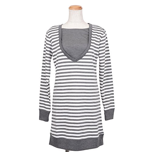 【Mサイズ】着丈62cm バスト88cm 袖丈58cm。 秋冬定番の便利ボーダーチュニック。 ディリーコーディネートしやすい ベーシックなボーダー。 パンツコーデもすっきり見える丈感です。 レイヤード風に見える胸元の当て布をめくれば 授乳しやすいです。