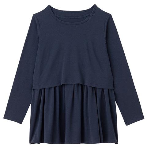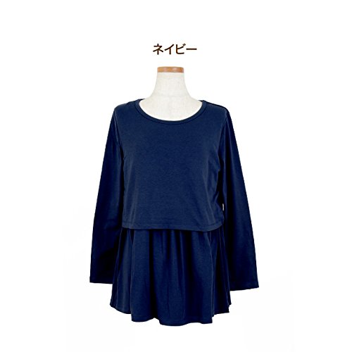【マタニティ】【トップス】【授乳口付き】切替ギャザーチュニック (紺)