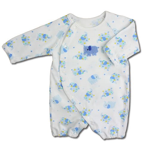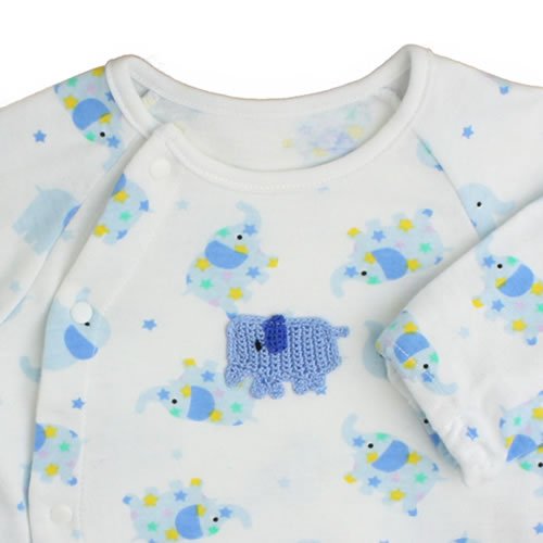 【フィットオール】ゾウと星 白地 ブルー カバーオール 【60cm - 70cm】ベビー 長袖