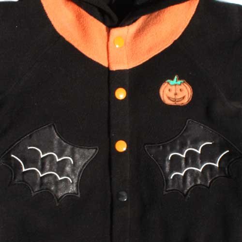 お出かけ用、ハロウィン用、年賀状用、記念撮影用の着ぐるみです。 フリースのデビルちゃんカバーオールです。 フードにはポンポン、前にかぼちゃの刺繍もついています。 ハロウィンパーティにもGOOD! SNSもいいね!