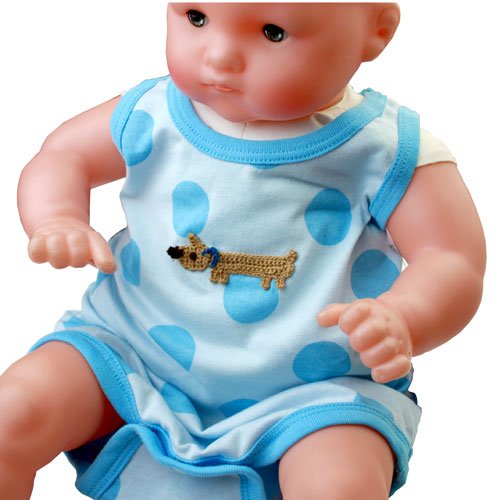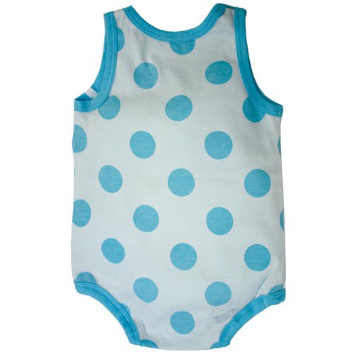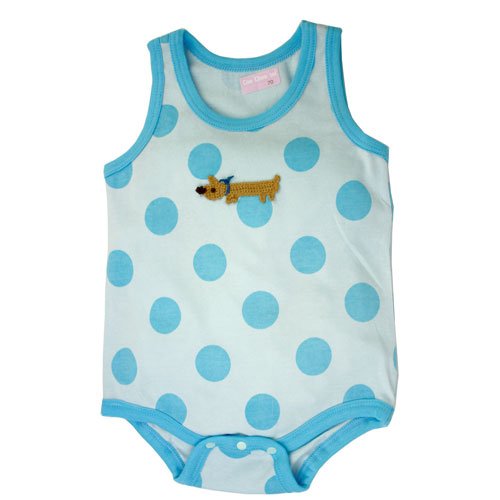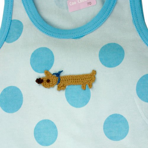 【袖なしロンパス】袖なしコンビ-ブルー大水玉犬ちゃん (70)
