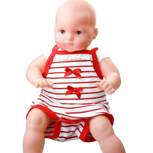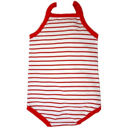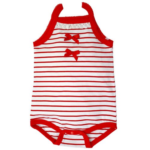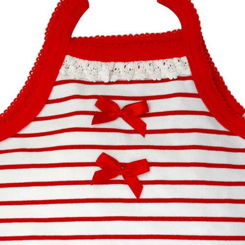 【袖なしキャミソールロンパス】赤ボーダーリボン (90cm)