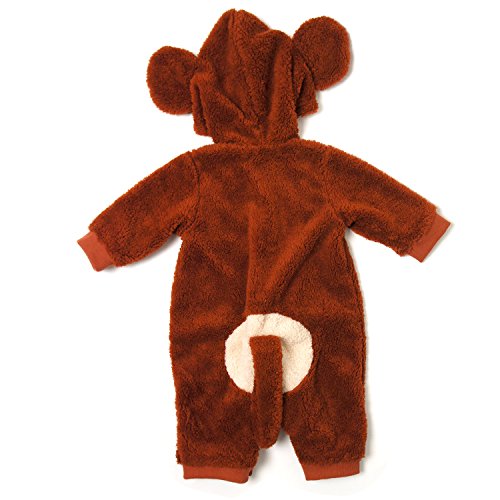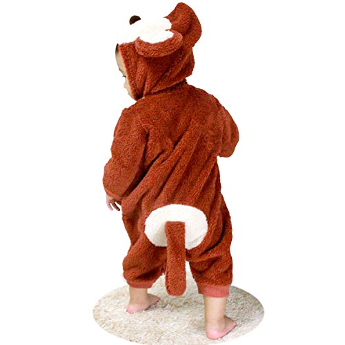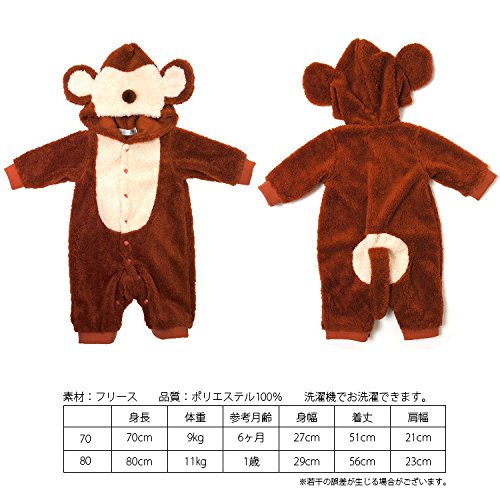 お出かけ用、ハロウィン用、年賀状用、記念撮影用の着ぐるみです。 軽くて、暖かいシャギーフリースのサルさんのカバーオール。 おしりとシッポがカワイく 目立ちます。