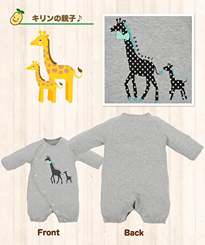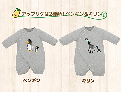 【フィットオール】杢グレーペンギン&キリンフィットオール (60cm-70cm, GY-キリンGN)