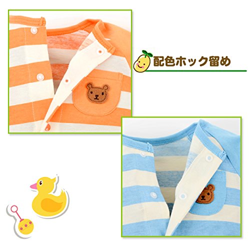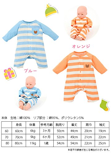 【カバーオール】ボーダーカバーオール(オレンジ&ブルー) (70cm, ブルー)