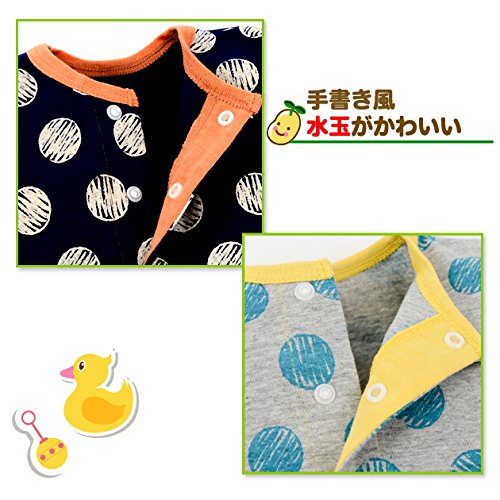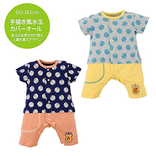 【カバーオール】手書き風水玉カバーオール (70cm, 紺)
