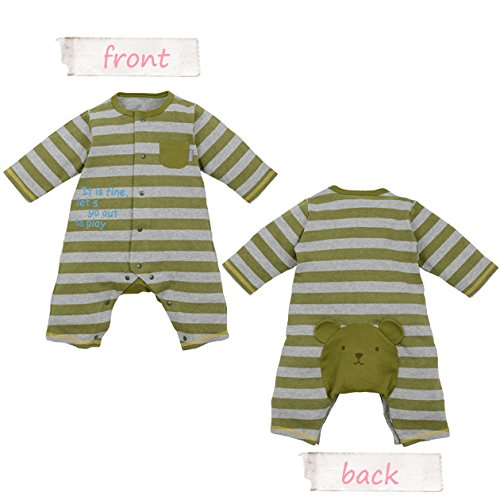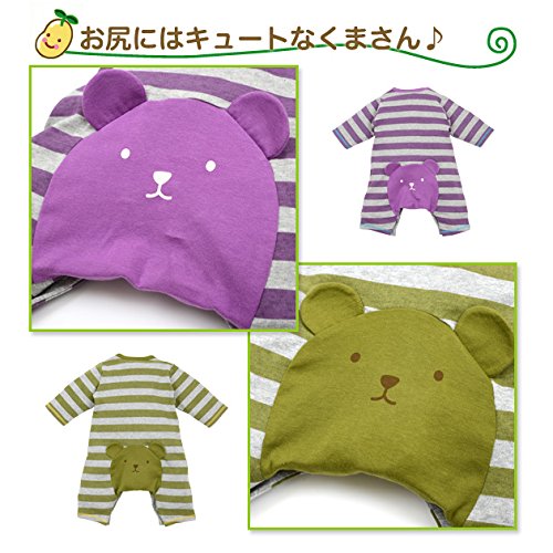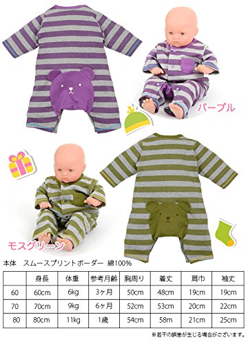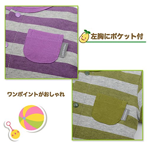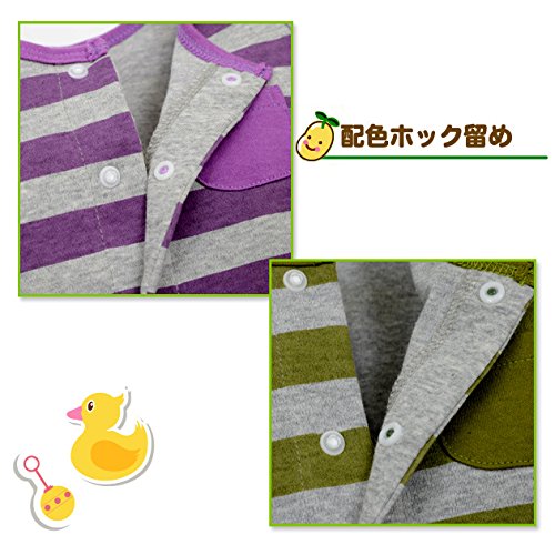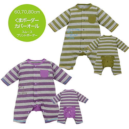 【カバーオール】ボーダーカバーオール(紫&モスGN) (80cm, モスGN)