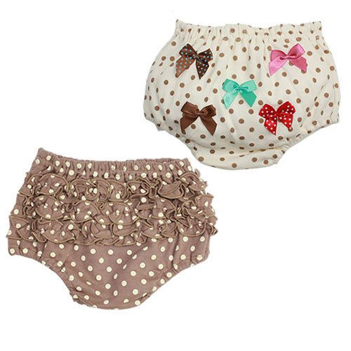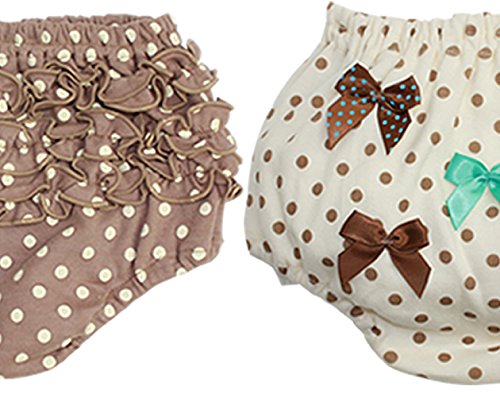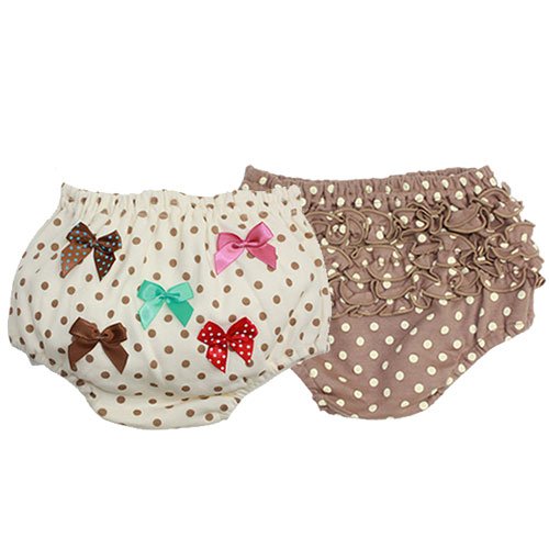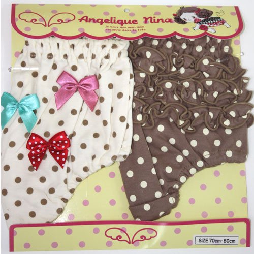 【2枚セットブルマ】茶&オフ水玉&リボン (70-80)