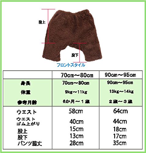 【くまパンツ】シャギーフリース耳付パンツ-こげ茶 (70-80)