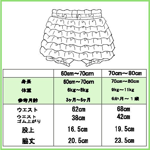 大人気の【フリフリブルマ】です(^з^)-☆ オーバーパンツで、そのままはいちゃう♪ アンダーパンツ(見せパン)でスカートの下に♪ フリフリフリルがついているのでかわいいです(*^o^*) お洗濯は洗濯ネットに入れて洗濯機で洗ってください。 干す前に(ココが大事!)フリルを広げて手で押さえたり 指で少しひっぱったりして形をきれいに整えてから干すと アイロンなしでかわいいフリフリブルマになります(^з^)-☆ かわいい台紙つきなのでプレゼントにオススメです(*^_^*)!