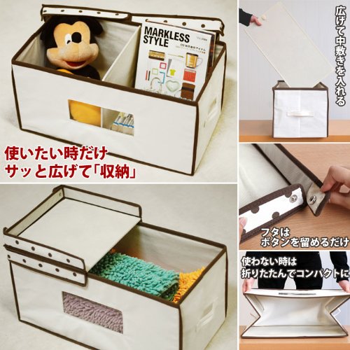 小さな窓がついているので、フタを開けずに中身を確認できます。衣類や雑誌、小物やおもちゃなどの収納にピッタリ。