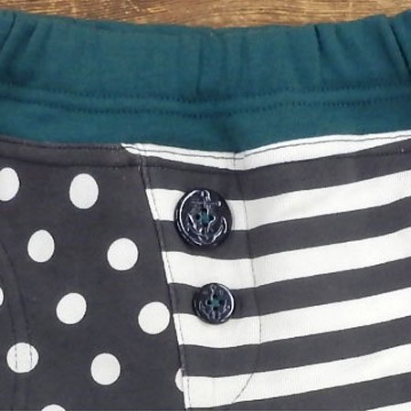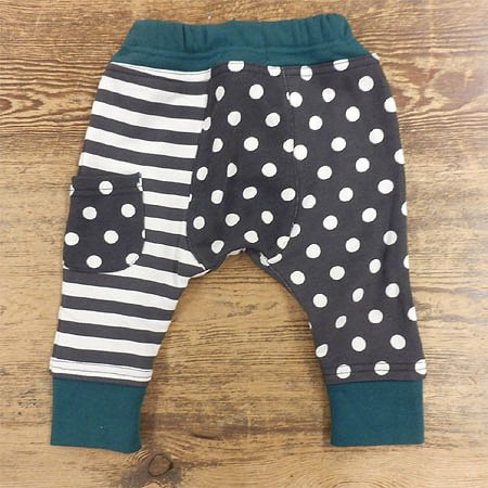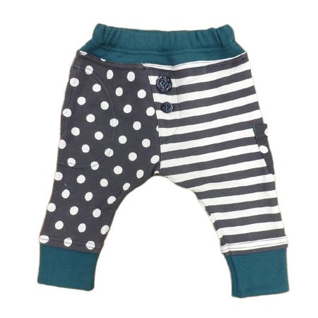Love&Peace&Money ドット ボーダー サルエルパンツ (100cm, チャコール x グリーン)