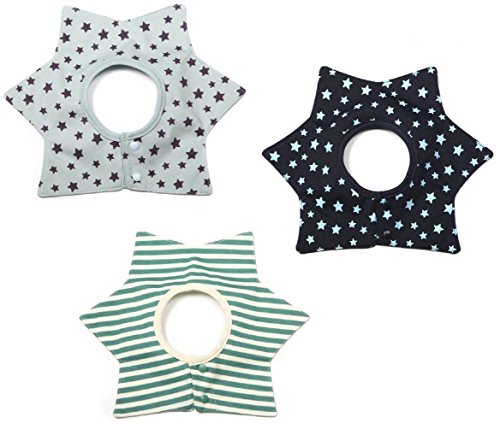 ミンテ 3枚セット 綿100% ベビービブ 食事用 スタイ エプロン 赤ちゃん/幼児に適用 よだれ掛け 4層厚さ 便利360°回転可 星デザイン 男の子 女の子 オールシーズン お洒落 出産祝い 保育園用 家用 (1#)