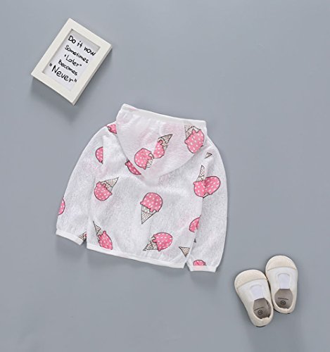 キッズ ラッシュガード シャツタイプ 子供用 男の子 女の子 長袖 可愛い図案 水着用 パーカー 紫外線カット エアコン冷え防止 80 90 100 110 120 cm (90cm, ピンクのアイスクリーム)