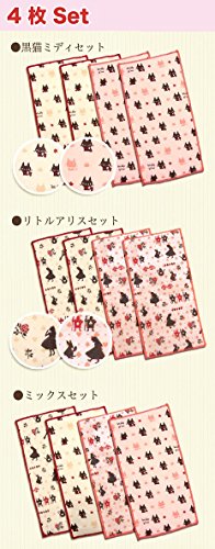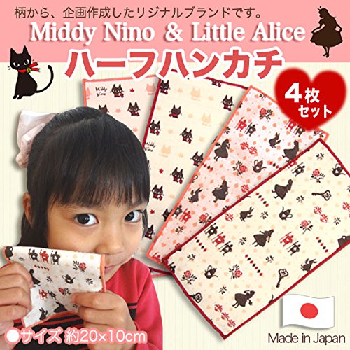 (ハーフハンカチ・黒猫ミディセット/タグ付)安心日本製!当店オリジナル!小さなお子様のポケットにピッタリ!スリムで可愛いハンドメイドミニタオル☆ハーフハンカチ4枚セット