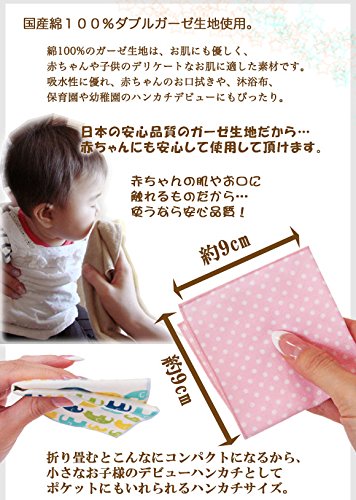 薄くてティッシュのように気軽に使えるミニガーゼハンカチ!!10枚セット。 綿100%のガーゼ生地は、お肌にも優しく、赤ちゃんや子供のデリケートなお肌に適した素材です。 18×18cmの小ぶりなミニハンカチで保育園や幼稚園のハンカチデビューにもぴったり! ●注意事項・・・・1枚1枚心を込めて手作りしていますので、サイズが多少異なる場合があります。大きさ・サイズ表記はあくまで目安です。 洗濯時にはネットに入れていただき、干す際によく形を整えて干して下さい。 【発送について】 こちらの商品は、メール便にて発送いたします。(ポスト投函) ご注文日より平日5営業日以内の発送となります。(休業日:土日祝、年末年始、夏季休暇) 複数店舗にて在庫を共有しておりますので、ご購入されたタイミング(保留中)で品切れとなる可能性がございます。 その際は店舗都合によるキャンセルとなりますのでご容赦くださいませ。