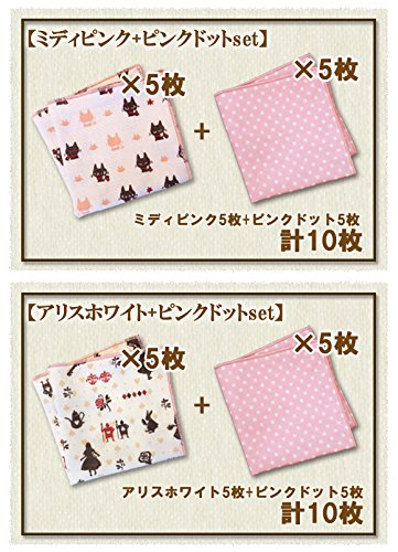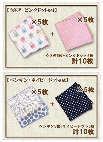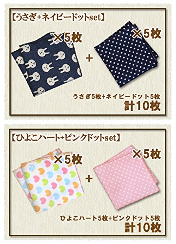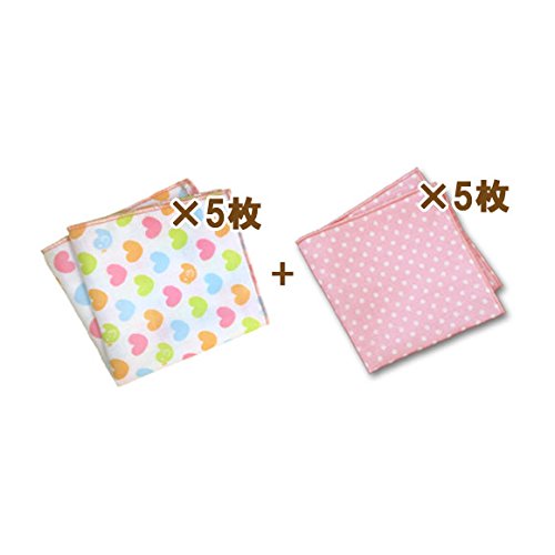 ミニガーゼハンカチ布ティッシュ「10枚セット」 (ひよこハート×ピンクドット)