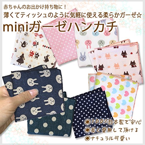 ※生地がなくなり次第、販売終了です。 薄くてティッシュのように気軽に使えるミニガーゼハンカチ!!10枚セット。 綿100%のガーゼ生地は、お肌にも優しく、赤ちゃんや子供のデリケートなお肌に適した素材です。 18×18cmの小ぶりなミニハンカチで保育園や幼稚園のハンカチデビューにもぴったり! ●注意事項・・・・1枚1枚心を込めて手作りしていますので、サイズが多少異なる場合があります。大きさ・サイズ表記はあくまで目安です。 洗濯時にはネットに入れていただき、干す際によく形を整えて干して下さい。 【発送について】 こちらの商品は、ヤマト運輸DM便または日本郵便ゆうパケットにて発送いたします。(ポスト投函) ご注文日より平日5営業日以内の発送となります。(休業日:土日祝、年末年始、夏季休暇) 複数店舗にて在庫を共有しておりますので、ご購入されたタイミング(保留中)で品切れとなる可能性がございます。 その際は店舗都合によるキャンセルとなりますのでご容赦くださいませ。