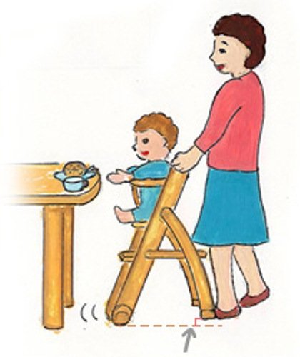 前輪キャスター付き、お子様が座った状態及び乗り降りする場合、お子様の体重と椅子本体の重量を同時に持ち上げて移動作業をしなくても、安全に楽に前後移動することができて便利。