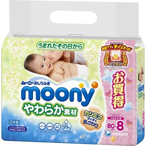 【まとめ買い】ムーニー おしりふき やわらか素材 純水99% 詰替 640枚(80枚×8)【×3個】