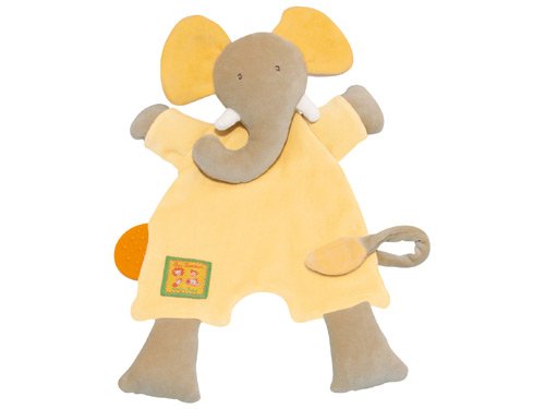 フランス、Moulin Roty(ムーランロティ)のLes Loustics(ルスティック)シリーズのゾウさんのドゥドゥ(安心毛布)です。 ドゥドゥには、歯固めが付いていて、シッポにはおしゃぶりが付けられます。 生まれてから、ずっと一緒にいるドゥドゥは、ママとミルクと赤ちゃん自身のにおいがします。 赤ちゃんはの臭覚はママを見分けるくらいに敏感です。 臭覚が発達している赤ちゃんは、その身近なにおいによって安心感を得るのです。 ドゥドゥは、あえて赤ちゃんの手で握りやすいように中綿を入れないものとなっています。 小さな手が握れる薄さが必要だからです。 柔らかくて優しい肌触りも、にぎにぎしている赤ちゃんを安心させてくれます。 おねんねやお出かけのお供に最適です。 高品質のコットンベロアを使用しているので、丈夫で長持ちです。 出産祝いにもオススメです♪