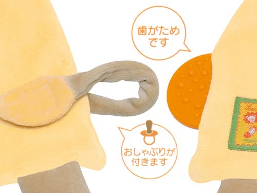- ドゥドゥには、歯固めが付いていて、シッポにはおしゃぶりが付けられます。