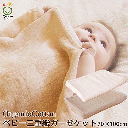 メイドインアース オーガニックコットン ベビー三重織ガーゼケット 70×100cm きなり