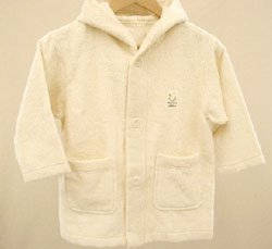 お風呂上がりの赤ちゃんをふわっとやわらかなオーガニックコットンで包んでくれます。オーガニックコットンは3年以上無農薬で育てられた真綿を使用しており、肌に優しいだけでなく環境にも配慮しています。お風呂上りのピカピカの赤ちゃんを自然な風合いのバスローブで湯冷めを予防してくれます。