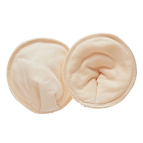 純オーガニックコットン100%の2枚組み母乳パッド。 タオル生地、スムース生地、平織り生地からなる5層の母乳パッド。肌に直接ふれる部分に、やわらかなスムース生地を使用しているため、授乳期のデリケートな胸にとてもやさしいつけ心地。授乳期用としてだけでなく、お肌のデリケートな方にもおすすめ。一度お洗濯をしてから使用すると吸収力がよくなる。 サイズは直径約12.5cm。