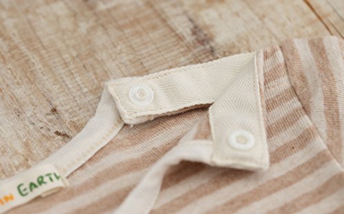 紡績の際に生まれたラフィ(落ち綿)のふっくらした質感を生かしたほっこりロンパース。通気性がよく肌ざわりがやわらかいので、繊細な赤ちゃんの肌に心地よいさわやか肌着です。きなりと茶色のオーガニックコットンのボーダー柄が、おしゃれ着として外出用にも可愛らしく、お揃いのミトンやスタイと合わせても。首まわりと足まわりはのびやかなフライス生地のバインダーでくるみ、汗をかきやすい場所もいつでもさらっと快適です。
