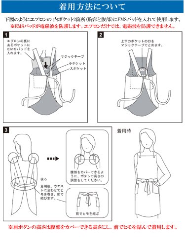 - ※EMSパッドが低周波電磁波を防護します。エプロンだけでは、電磁波を防護できません。