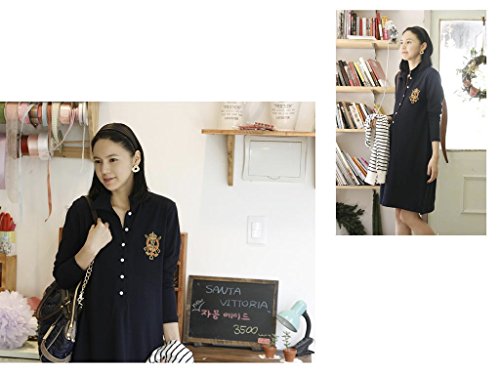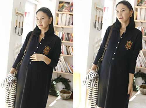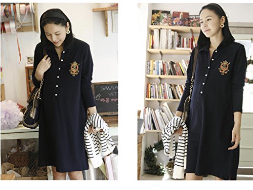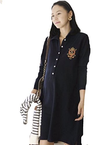 medy (メディー) 産前 から 産後 まで! 綿 春 秋 授乳 可 おしゃれ 長袖 マタニティ ワンピース 可愛い マタニティー服 妊婦 フリー (ネイビー)