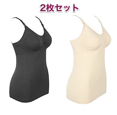 medy (メディー) 2枚組(黒色・肌色) パッド付き カップ付き 授乳 可 多機能 産後 キャミソール 授乳キャミ タンクトップ 補正 下着 授乳服 マタニティウェア (XXL)