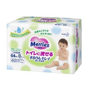 メリーズトイレに流せる するりんキレイおしりふき詰替64枚×3P【1ケース/12セット入】