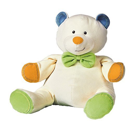 Teddy Bear is made of 100-percent certified organic cotton fabrics and stuffing, Bear is 16-inches long and Thready teddy plush rattle is 6.5'' tall, White bear has multi colored trim and a jaunty green bow, Rattle is made with ultra-soft microfiber fabric and embroidered detailing. Perfect size and shape for little hands to shake., All Mary Meyer toys are made without using harmful pesticides, toxic chemicals or dyes; tested to exceed the most stringent global safety standards. Mary Meyer has been making safe, fun toys for more than 75 years