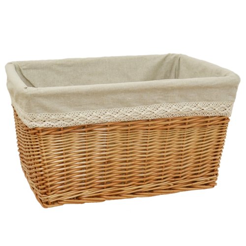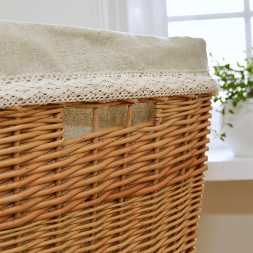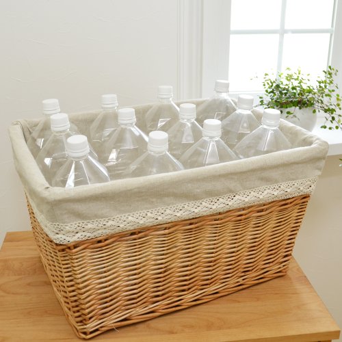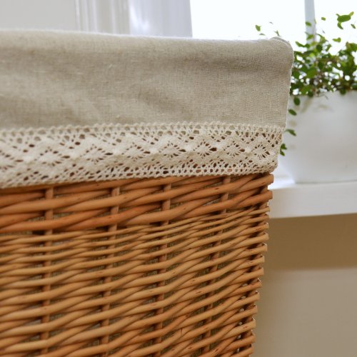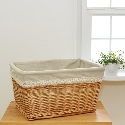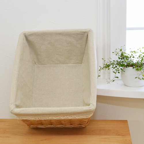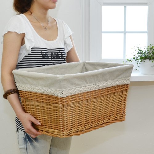 内布が取り外しできる ウイロー 深型 スタッキング バスケット Lサイズ 内布:ライトグレー(レース)