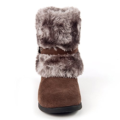 モモ グロウ「Maddie」スタイルのブーツは、折り返しにフェイクファーのカフをあしらった、暖かく履き心地のいいレザー製アンクル ブーツです。ラインストーンをまとったバックルが、調節可能なアンクル ストアップに輝きを与えます。防寒仕様の内部は、お子様の小さな足指を暖かく包み、弊社のユニークなモモ トレッドが、滑りやすい氷の表面でもバランスを取りやすくします。このスタイルは、魅力的なテイストのある、クラシックなスタイルです。